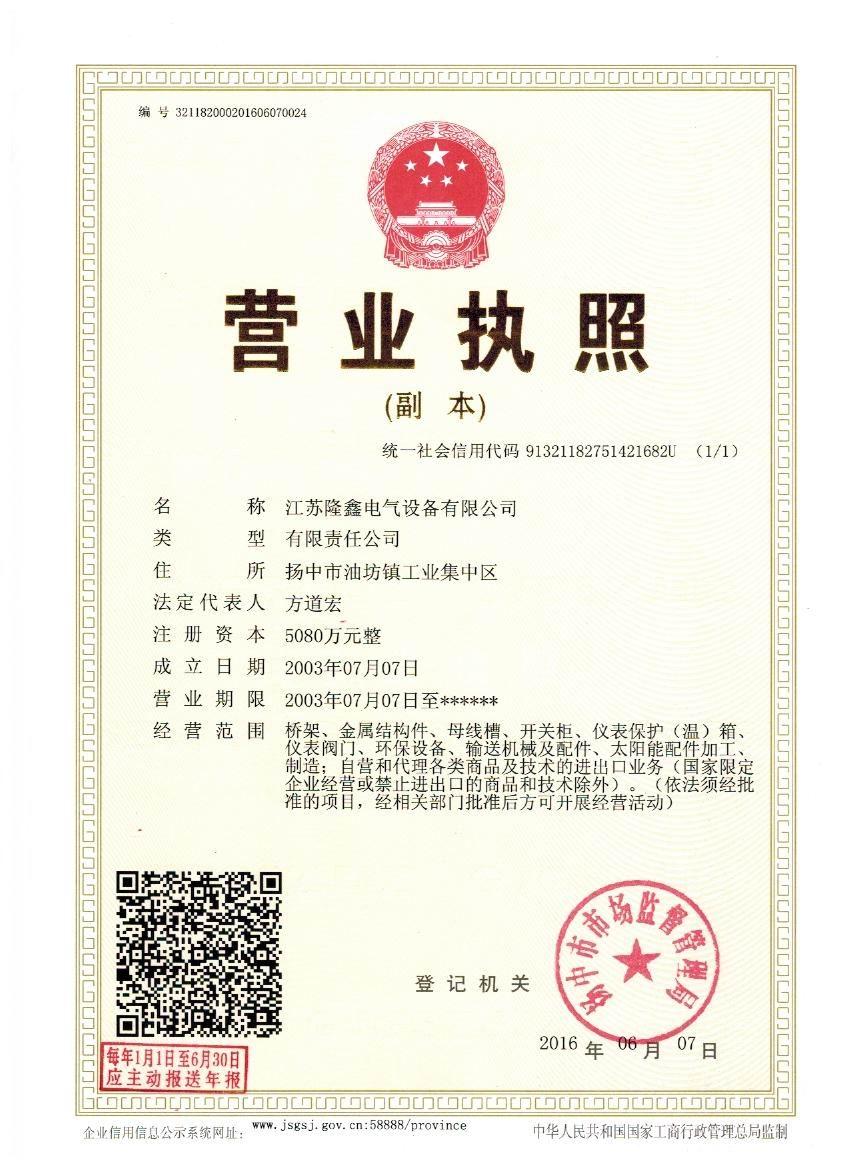 江蘇隆鑫電氣設(shè)備有限公司(原揚(yáng)中市隆鑫電器設(shè)備有限公司)位于風(fēng)景秀麗的江南古城 ---- 鎮(zhèn)江東部揚(yáng)子江畔,水陸交通便利。 本公司是中石化網(wǎng)絡(luò)成員企業(yè),是揚(yáng)中橋架企業(yè),工業(yè)管道閥門、儀表管配件、母線槽、匯線橋架、玻璃鋼制品的專業(yè)生產(chǎn)廠家。 我公司一貫以經(jīng)營(yíng)以管理為保證、以科技進(jìn)步為動(dòng)力,使產(chǎn)品的市場(chǎng)占有率不斷提高,公司正持續(xù)、穩(wěn)步、健康地向前發(fā)展,秉循“創(chuàng)造完美、服務(wù)用戶、奉獻(xiàn)社會(huì)”的經(jīng)營(yíng)觀念,本公司生產(chǎn)的儀表管件及閥門系列產(chǎn)品、母線槽、電纜橋架幾乎覆蓋全國(guó)31個(gè)省、市、自治區(qū)的化工、冶金、交通、輕...